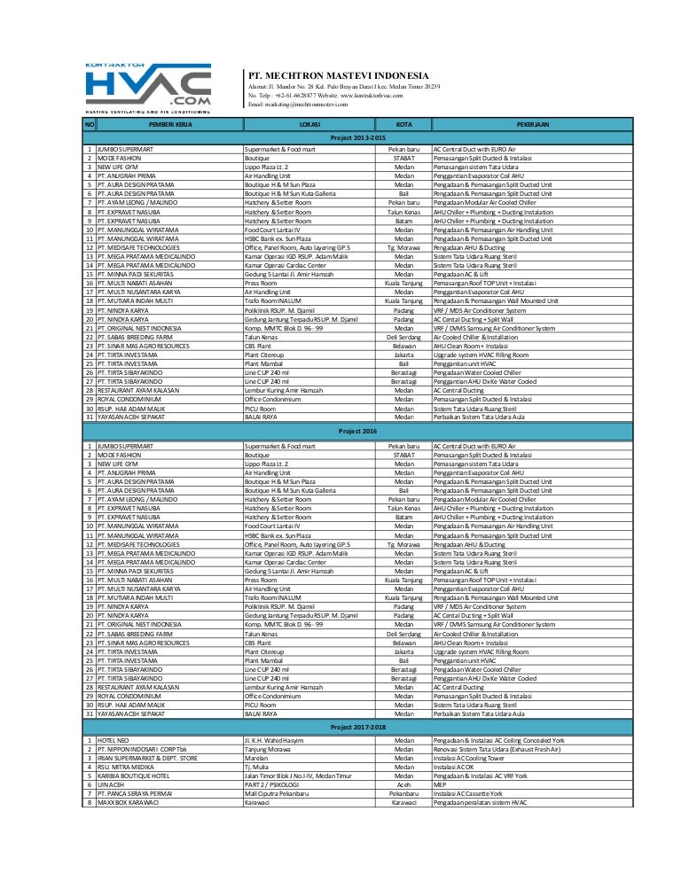 List Project Kontraktor HVAC – PT. Mechtron Mastevi Indonesia![]()